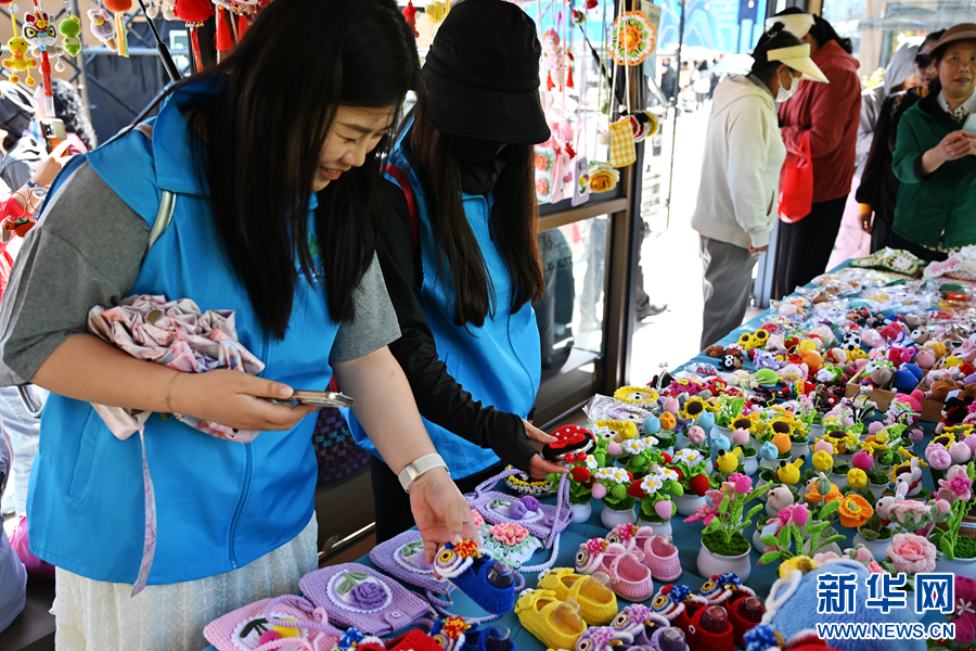 市民选购手工编织产品。