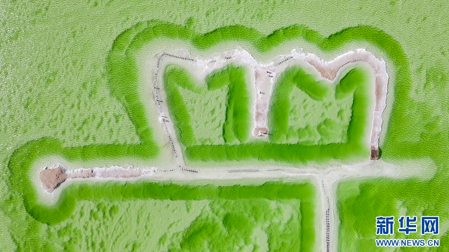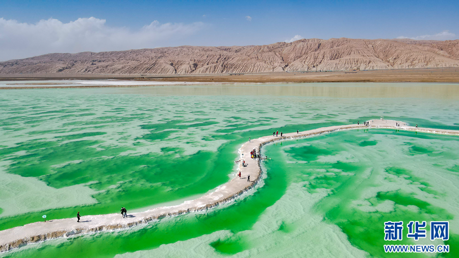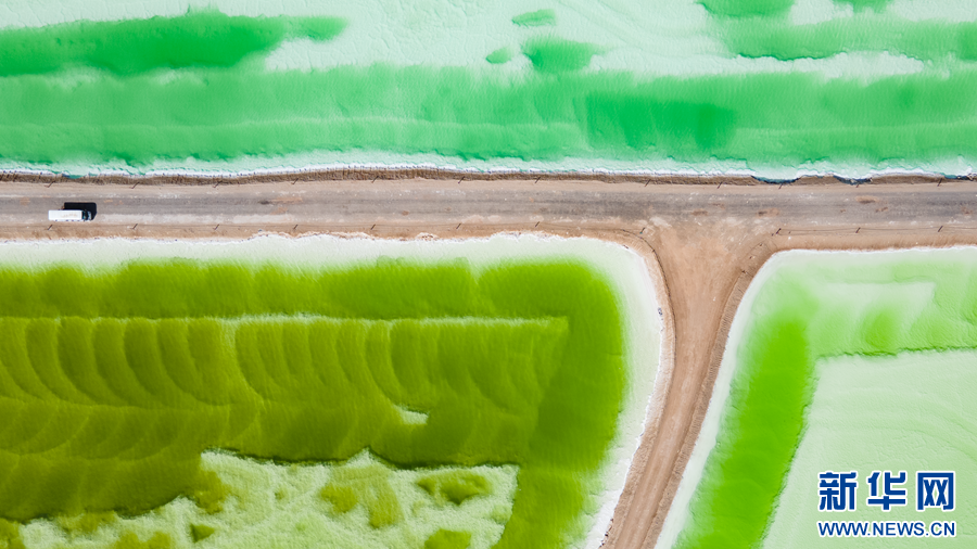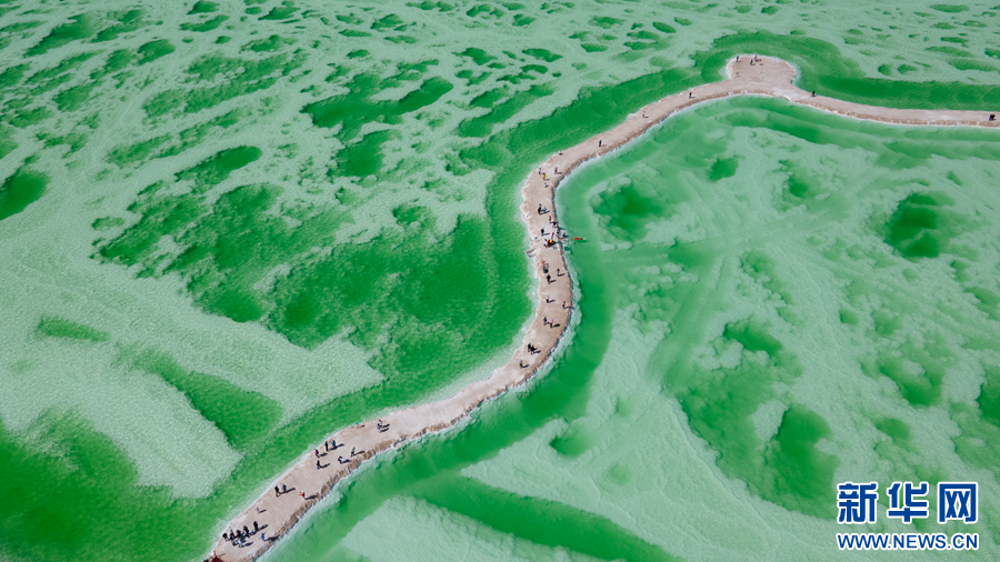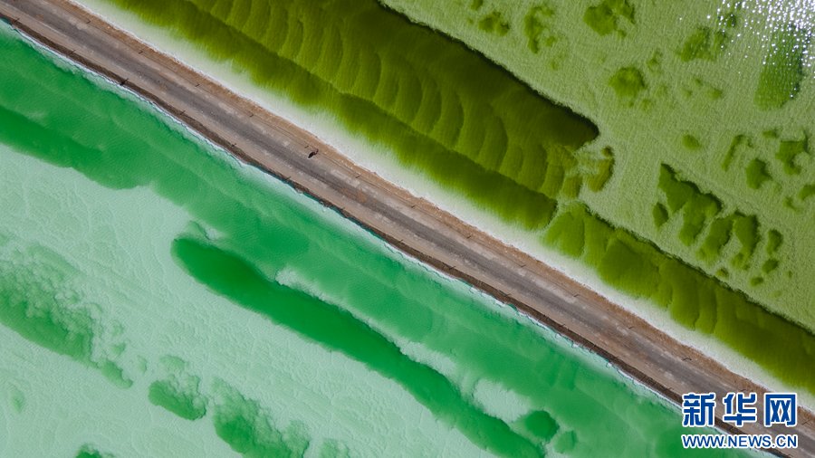 茫崖翡翠湖位于青海省海西蒙古族藏族自治州茫崖市花土沟镇,属于硫酸镁亚型盐湖,由于所含矿物质浓度的不同,在阳光的映照下,湖水呈现出深浅不一的翠绿色,就像无数块翡翠镶嵌在大地上。从无人机视角望去,茫崖翡翠湖宛如色彩绚丽的油画,清新的色泽,甜蜜又梦幻。