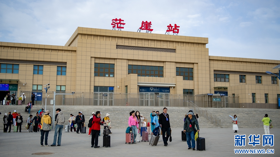 5月19日,乘坐“西宁-茫崖”旅游专列的游客到达青海省海西蒙古族藏族自治州茫崖站。